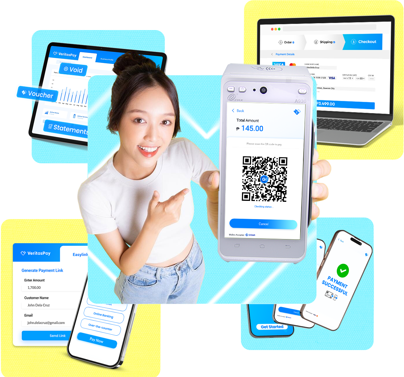 Accept card and QR code payments under one terminal.