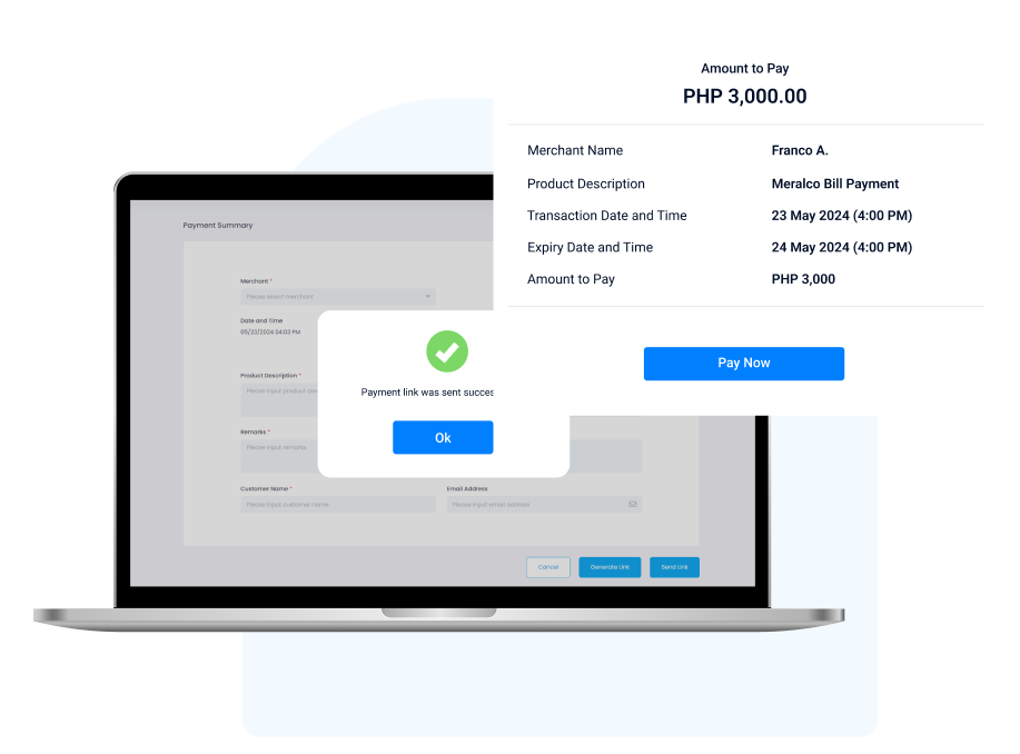 The customer accesses the link and inputs the payment.